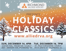 For more information about "Holiday Classics," please contact us by e-mail at info@alliedrva.org or visit the Richmond Allied Voices website: https://alliedrva.org/!